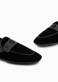 A new take on driver-inspired loafers, crafted from elegant velvet with a tapered shape. The style features an extremely flexible and supple construction, which ensures a comfortable fit. Details such as the velvet GA logo and matching leather inserts complete the shoe, which has a sole with rubber inserts. Product Code: X2B127XR2681K001 Details Composition 65% Viscose 35% Cupro Pointed shape Smooth leather details Velvet GA logo detail on the smooth leather vamp Sole with inserts in fine-ribbed rubber Made in Italy