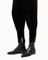 Elegant trousers made from velvet, the brand’s iconic fabric known for its ability to catch the light. The style features front darts that start at the contoured waistband, creating draped volumes and fluid movement along the leg. The item’s silhouette features a line that gets slightly narrower towards the hem, ending in an ankle cuff with a concealed zip fastening. Perfect for interpreting sophisticated, modern looks. Darted trousers Smooth, contoured waistband Side zip closure Two side pockets Ankle cuff detail with zip Unlined Made in Italy Product Code: GW001601TE10831U8130