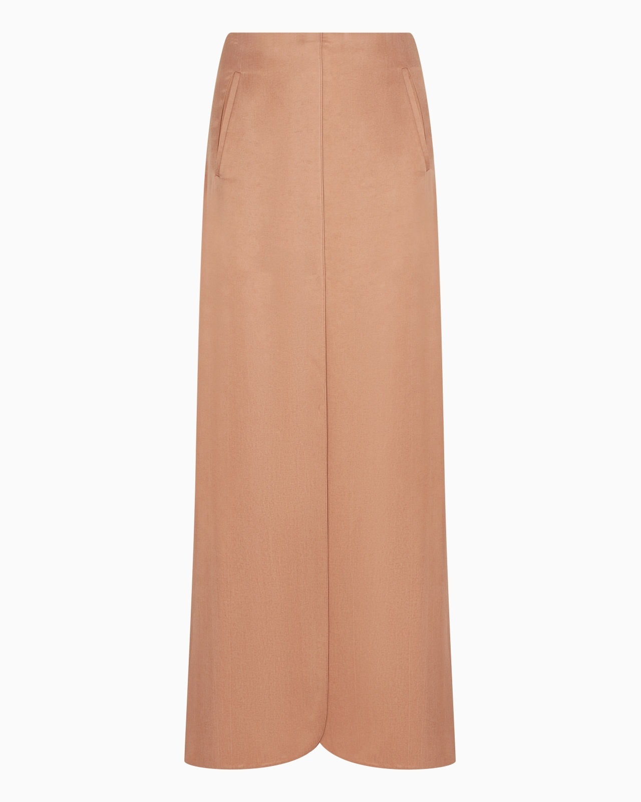 Flowing lines define this long skirt made of a viscose and cupro that has an extremely silky and comfortable feel. Its minimalist design is enlivened by a front slit with a slight overlap and a rounded hem to add a sensual touch. A versatile style, offered in the collection’s signature shades, perfect for various looks. Smooth waistband Two welt pockets Back central zip fastening Overlapping front slit Length: 105 cm from the waist Unlined Made in Italy Product Code: GW000867TE13750U6090