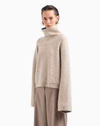 Warm, cosy and snug jumper made from viscose, cashmere and silk, perfect for protecting yourself from the cold with elegance. The style features a cosy mock neck embellished with special logo buttons on the back and sleeves with flared cuffs. Versatile and refined, it completes laid-back daytime looks with a chic touch. Product Code: GW001389AF169731F1030 Details Composition 46% Viscose 26% Cashmere 18% Mulberry silk 10% Polyester Fineness: 14 Mock neck Button detail on the back Long sleeves with flared hem Ribbed hem Made in Italy