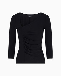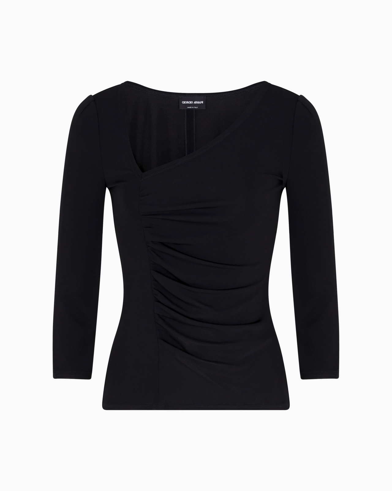 Long-sleeved jumper made from cosy viscose jersey, embellished with an asymmetrical neckline that defines the line. Featuring three-quarter-length sleeves and a flattering side drape, the item is distinguished by its sophisticated style. A versatile, refined offering designed to embellish numerous outfits. Asymmetric top line Three-quarter length sleeves Front draping Back zip closure Made in Italy Product Code: GW002155AF19844UC001