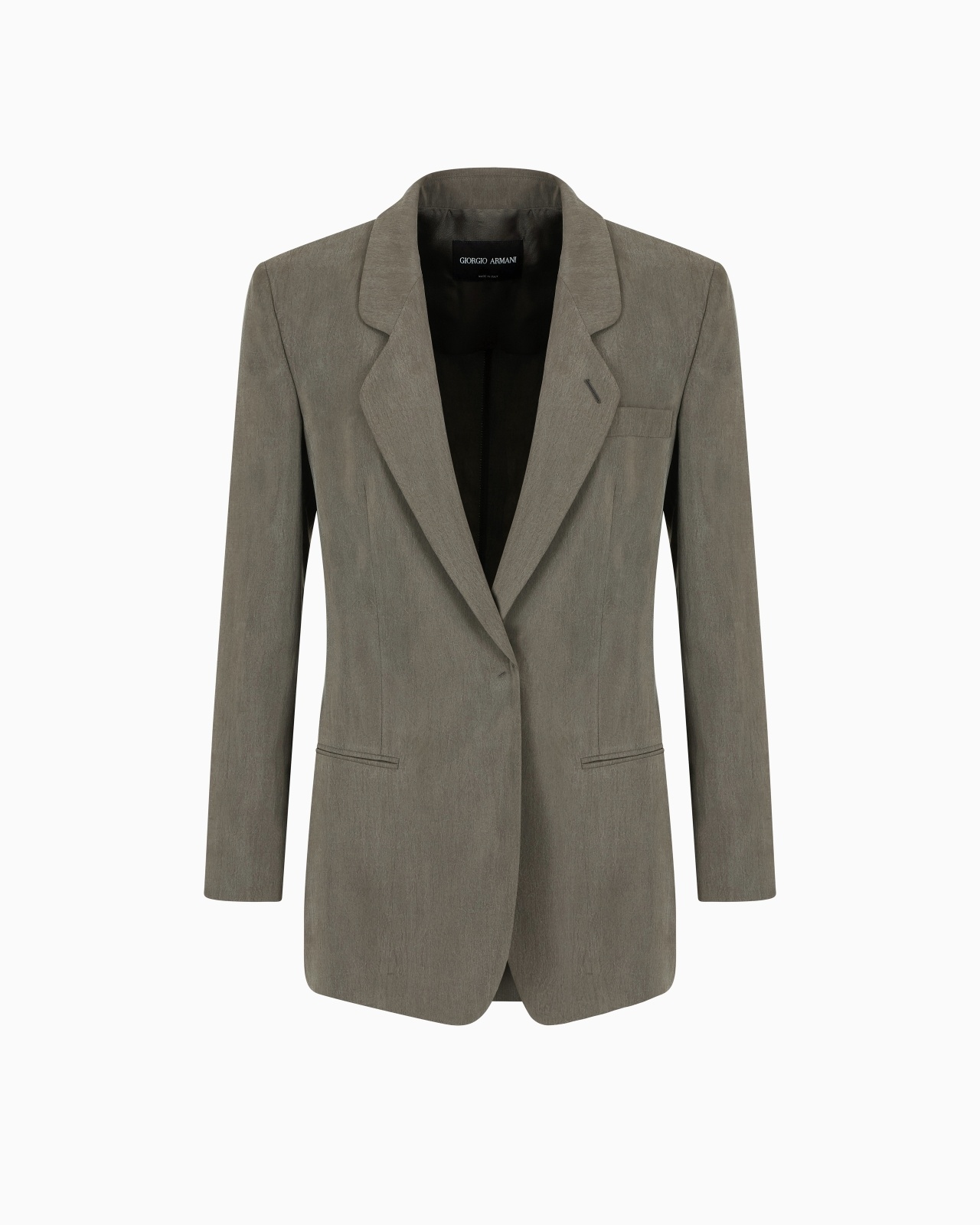Elegant single-breasted jacket, made of exquisite, washed silk in the collection’s colour palette. The style features notched lapels, a concealed button closure and a special decorative striped motif at the cuffs. A refined piece, perfect to pair with the trousers in the same fabric, to create fresh, sophisticated looks. Single-breasted jacket Notched lapels One-button single-breasted closure Two front welt pockets Decorative striped detail on sleeves Partially lined Length: 70 cm Product Code: GW000844TE13824U8119