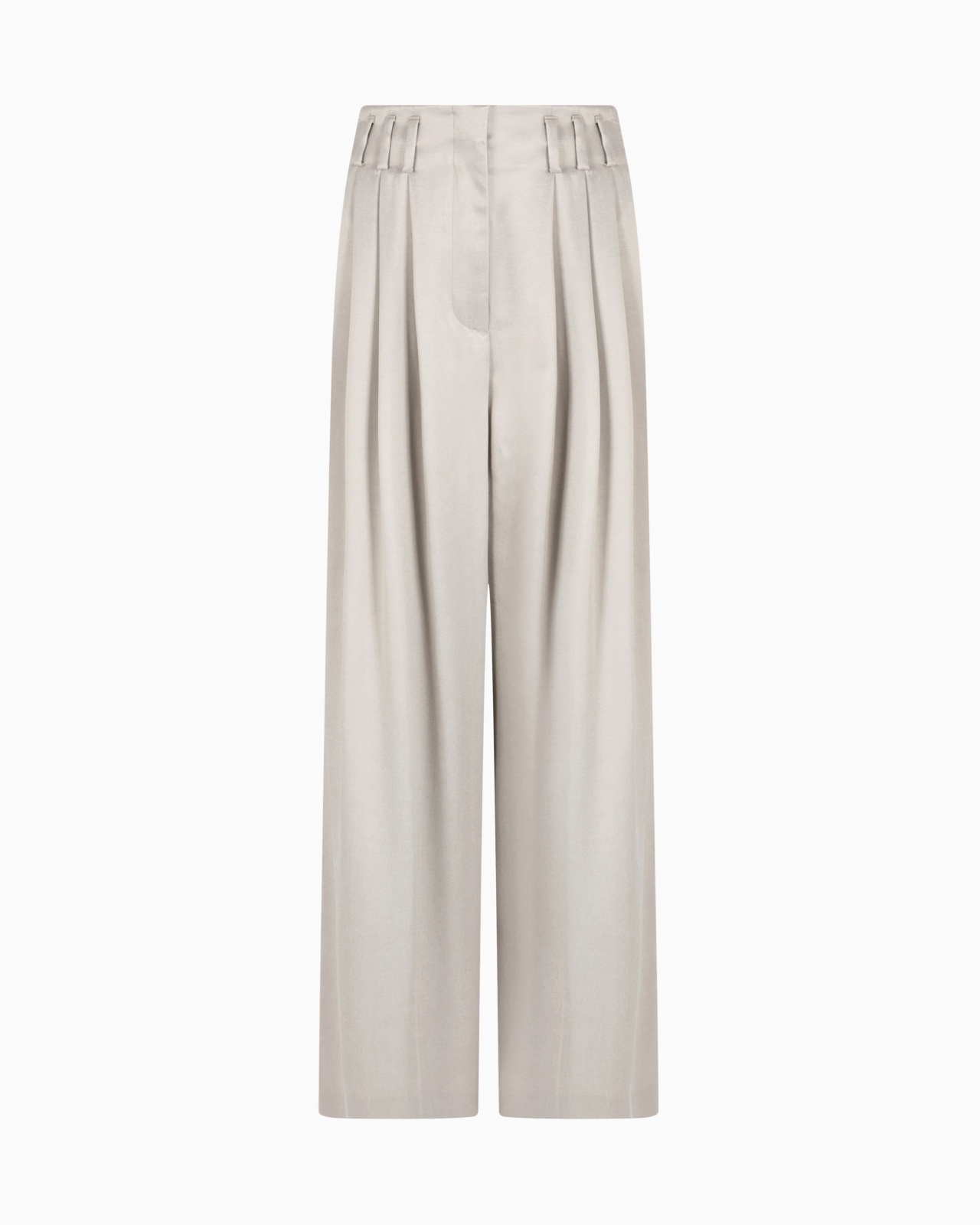 Refined lines for these trousers made from viscose and cupro, offered in the season's colour palette. The style has a zip fastening and two side pockets, and features front pleats which add movement and volume. Sophisticated and feminine, they dress the silhouette with elegance, completing daytime looks paired with the collection’s jackets and shirts. Waistband with belt loops Concealed zip-and-hook closure Two side pockets Unlined Made in Italy Product Code: GW000646TE13750U8003