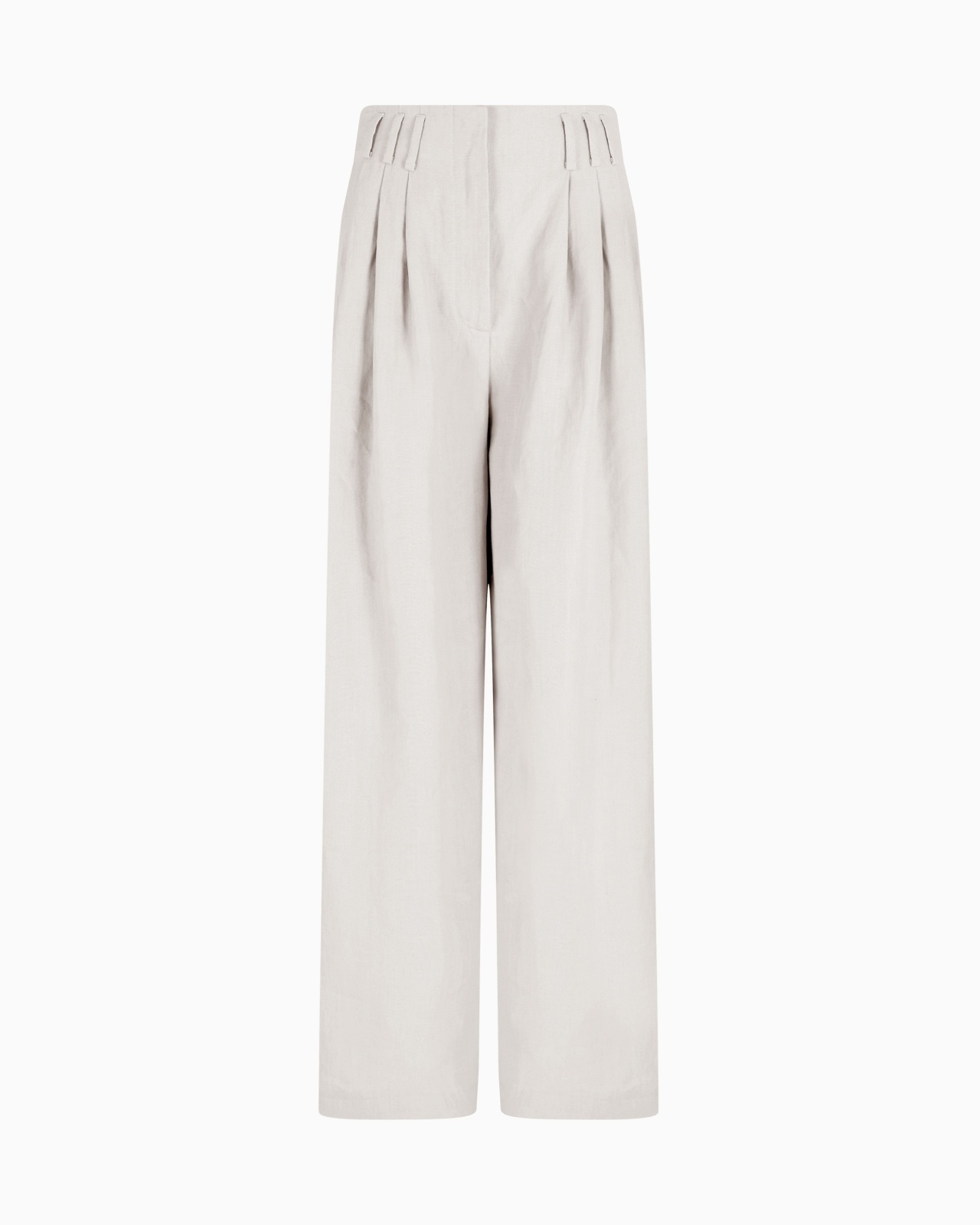 Refined lines for these trousers made from crisp, lightweight linen. The style has a zip fastening and two side pockets, and features front pleats which add movement and volume. Sophisticated and feminine, they dress the silhouette with elegance, completing daytime looks paired with the collection’s jackets and shirts. Waistband with belt loops Concealed zip-and-hook closure Two side pockets Unlined Made in Italy Product Code: GW000646TE11126U8003