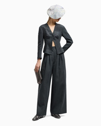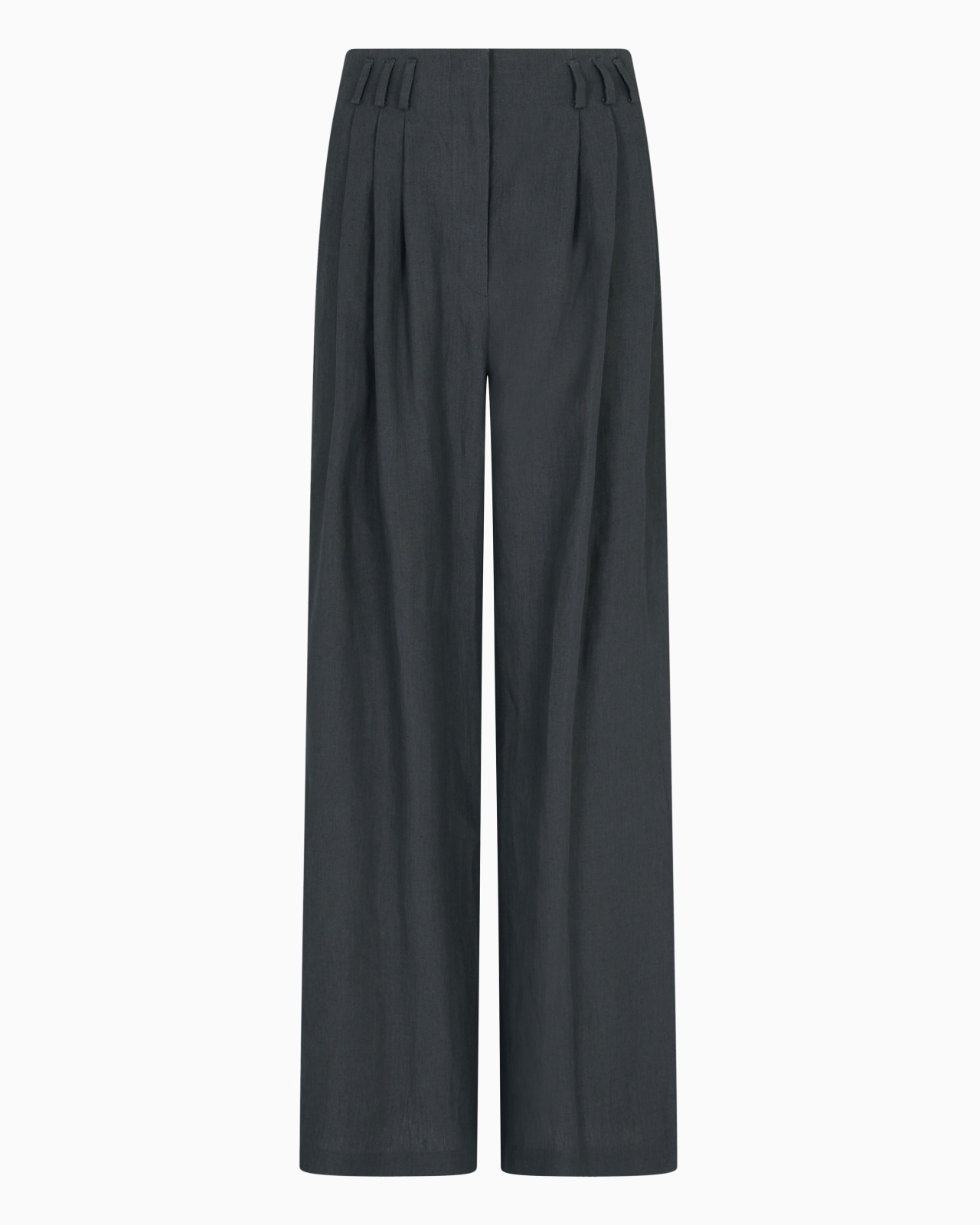 Refined lines for these trousers made from crisp, lightweight linen. The style has a zip fastening and two side pockets, and features front pleats which add movement and volume. Sophisticated and feminine, they dress the silhouette with elegance, completing daytime looks paired with the collection’s jackets and shirts. Waistband with belt loops Concealed zip-and-hook closure Two side pockets Unlined Made in Italy Product Code: GW000646TE11126U8110