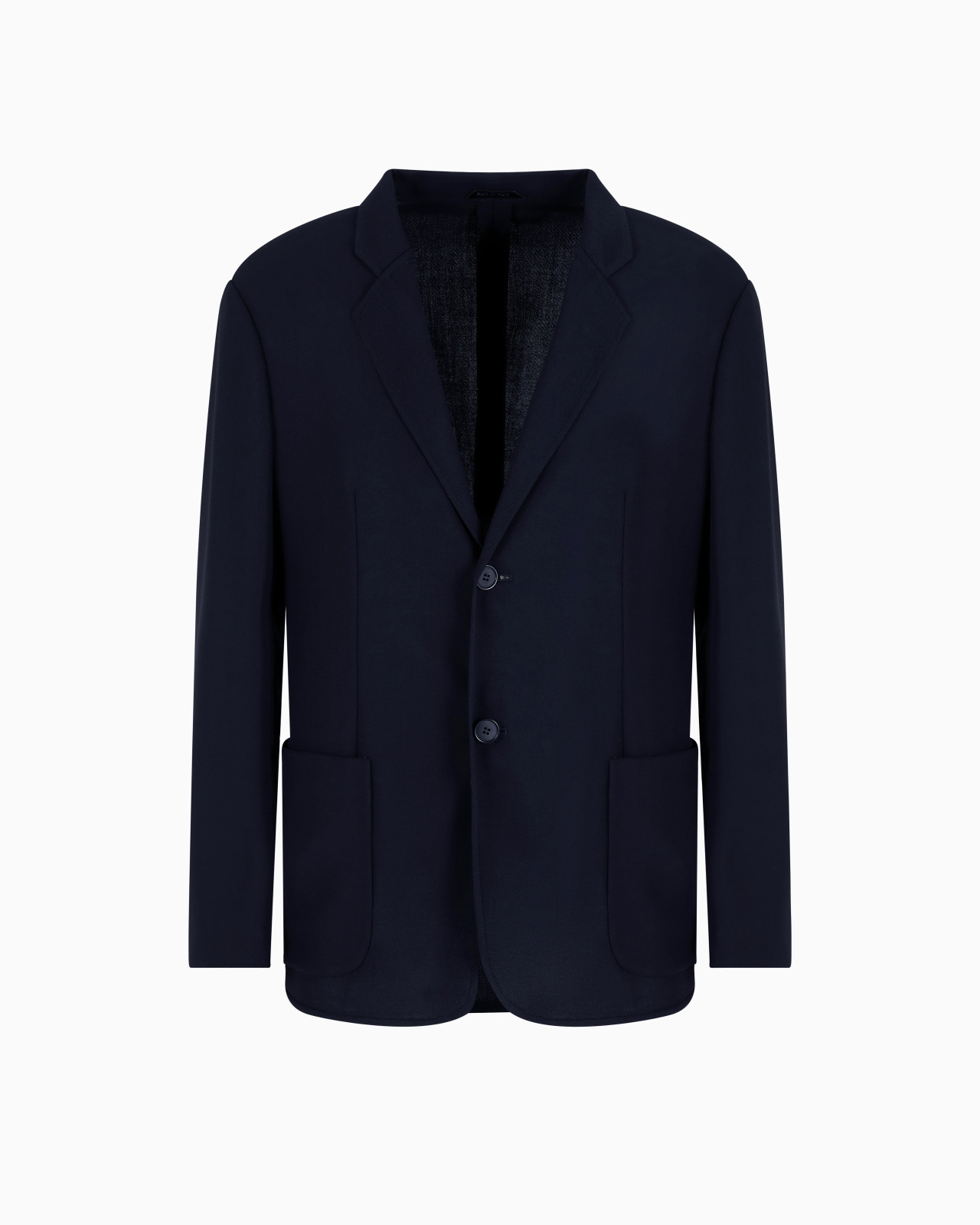 Single-breasted jacket in an essential design with a lightweight, comfortable, fully unlined construction. The style, with notched lapels, a one-button fastening and two patch pockets, is made of wool crepe and comes in a deep navy blue. A versatile piece, perfect for looking elegant on various occasions. Single-breasted jacket Notched lapels Two-buttoned, single-breasted closure Two patch pockets Unlined Length: 73 cm Made in Italy Product Code: GM000010TE13912UB109
