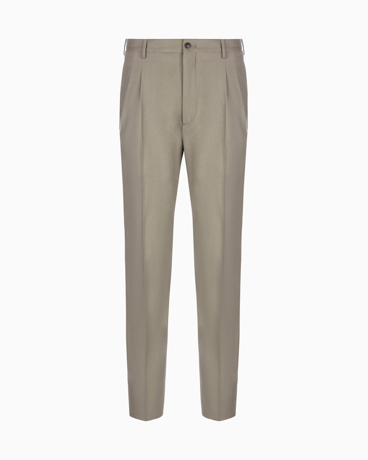 Darted trousers, given a modern wide fit, embody the spirit of the season. This style, made of stretch melange flannel, features front darts. The belt loops at the waist, side inseam pockets and double welt back pockets with a button complete the garment. Product Code: 8WGPP03DT004K1U6UG Details Composition 100% Virgin Wool Two darts Button and zip fastening Side slant pockets Buttoned rear welt pocket Cuff width: 17 cm Made in Italy Fitting The model is 6' and is wearing size 48 (IT)