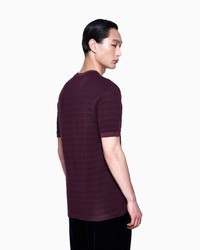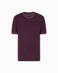 Crew-neck T-shirt made of cosy, warm virgin wool jersey, featuring embossed horizontal stripes that create a three-dimensional effect. The style is defined by matching knit trims, and thanks to its essential line, is a versatile and sophisticated complement to a wide array of looks. Crew neck Short sleeves Embossed horizontal stripes Made in Italy Product Code: GM001988TE17022U5079