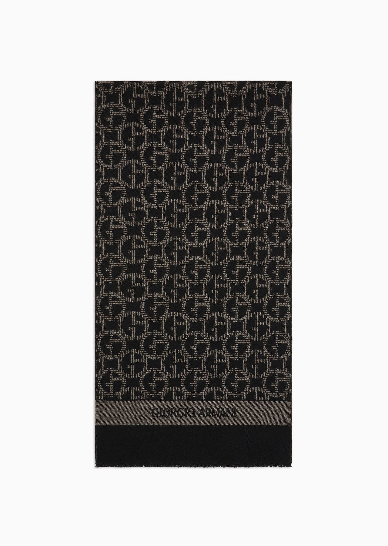 Sophisticated scarf made from soft wool, embellished with a jacquard motif with an all-over GA monogram logo and fringed edges. A perfect style to add individuality to daytime looks, presented in versatile and elegant shades. Product Code: 7450604F100101641 Details Composition 100% Wool Monogram jacquard motif Jacquard Giorgio Armani logo Fringed trim Measurements: 180 x 45 cm Made in Italy