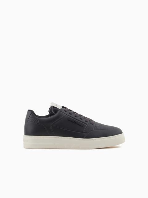 Viscose jumper with all-over flocked-effect jacquard EA logo