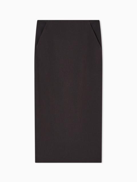 STRETCH, WOOL CRÊPE MIDI SKIRT