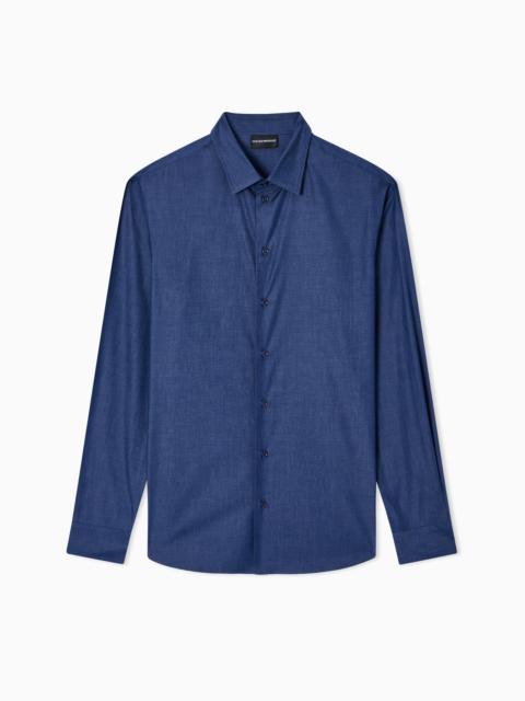 DENIM-EFFECT FABRIC SHIRT