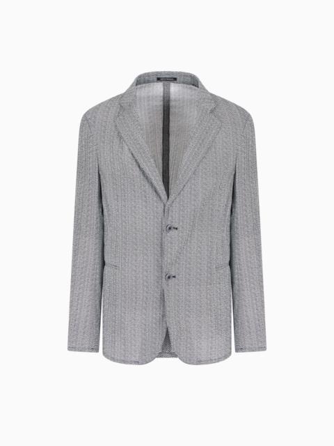 SINGLE-BREASTED BLAZER IN A CHEVRON-PRINT SEERSUCKER FABRIC