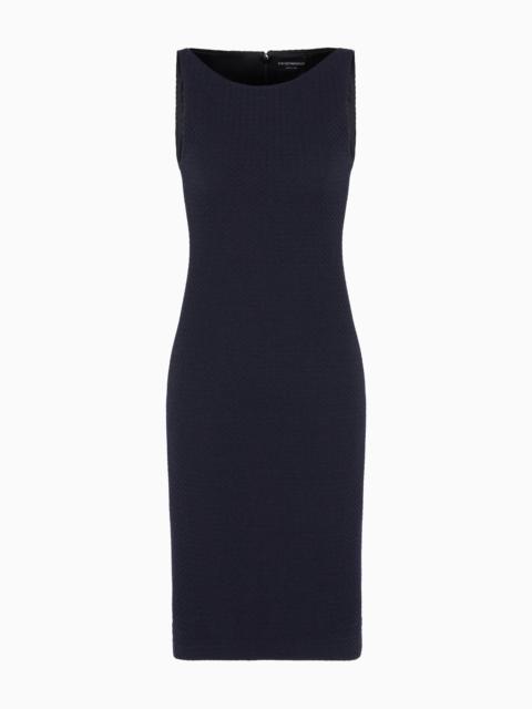 Wool-blend jacquard jersey sheath dress with embossed pattern