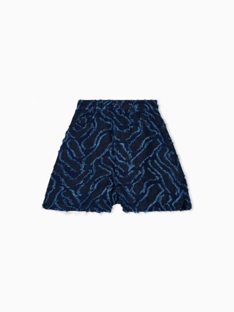 FRINGED EMBOSSED JACQUARD DENIM SHORTS