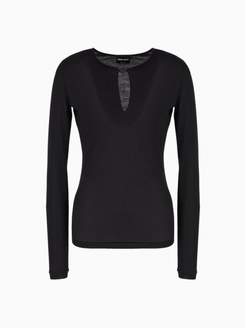STRETCH-JERSEY T-SHIRT WITH GATHERED SLEEVES