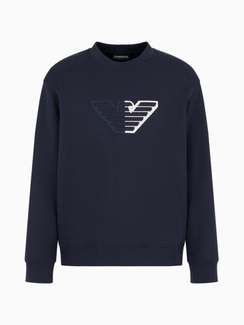 Double-jersey sweatshirt with embossed oversized eagle on a chevron background