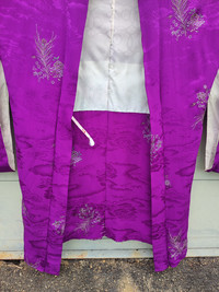 Vintage Kimono Japan Dragon Silk Peacocks Motif Haori Style [MEASUREMENT] Actual Size manual measurements ( Inches ) Armpit to Armpit : 22.5 Length : 35.0 Shoulder to Shoulder : 25.0 Hem : 22.5 Sleeves : 13.0 [CONDITION] -An item that has been used or worn previously. -See Our listing for full details and description of any imperfections. -Please don't expect it to be like new or in pristine condition [SHIPPING] -Item will be shipped in 1-3 working days after payment received. -FOR CANADA @ OTHER COUNTRY WHICH USING "P.O BOX", PLEASE PROVIDE YOUR ''BUZZ CODE/NUMBER'' IN YOUR ADDRESS FOR SECURED DELIVERY. Payment method : Paypal đź’ĄATTENTIONđź’Ą -Please leave your phone number on the note while make a purchase. -Don't forget to check out my store for more great stuff -Please pay close attention to measurements provided. -Do not rely on tag size as pre-worn items may have been altered, stretched or shrunk & vintage sizes do not directly translate the modern sizes. -The best way to ensure a correct fit is to compare our measurements with the measurements of a similar item that you know fits you well. -Please enlarge the photos for clearer image. âť—STRICTLY NO REFUND AND RETURNABLE ITEM AFTER PAYMENT HAS BEEN MADE âť— Thank for visited