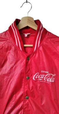 Coca Cola × Vintage - Vintage 1980's Coca Cola Red Snap Front Satin Bomber Jacket