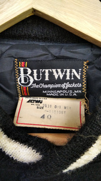 • PLEASE CONTACT ME WITH ANY QUESTIONS BEFORE BUYING!!! • READ THE DESCRIPTION BEFORE BUYING. • BUY A BUNDLE TO SAVE YOUR PENNY. • ANY REASONABLE OFFERS WILL BE CONSIDERED • BRAND : Butwin Made In Usa/40 • CONDITION : Good Condition Without Any Holes,Stain or Faded.| Embroided Spell Out Patches Logo | Leather Sleeves. OVERALL CONDITION : 8.5/10 (Very Good) ‌• ACTUAL SIZE MEASUREMENTS : ARMPIT TO ARMPIT/ CHEST WIDTH : 24.5'inches LENGTH : 26.5'inches • SIZE ON TAG : 40 • MATERIALS : Refer Photo SHIPPING POLICY • EXPRESS SHIPPING days worldwide (3-4 days as usual price depends on weight (minimal price of ship $25.
