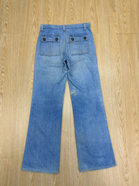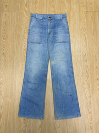 VINTAGE 70s Levis 615 Flare 🔢Tag size W30 Manual Measurement (inchi) 👖Waist 30’ 👖Outseam Length 42’ 👖Inseam 30’ 👖Leg Opening 10’ 👖Front Rise 12’ 👖Thigh 11’ 👖Knee 8.5’ 📱All measurements are taken with the garment flat on the floor. > Patch pocket > Button stamp 38 > Zip Talon 🇯🇵Made in Usa 🔴Colour Distressed Blue ©️Condition used *Refer photo for the best view ⭐️⭐️👖all pants need to be washed before used for clean soft dust ✅PLEASE DON'T EXPECT IT TO BE LIKE NEW OR IN PRISTINE CONDITION. ⭐️All item include shipping ✈️SHIPPING 1.DHL EXPRESS Shipping ($25-40) and it will take about 3-8 working days for delivery for most international orders. Please leave your phone number. Tracking number will be provided. 2.We will combine shipping on all of my items for savings on multiple purchases. 3.All items will be shipped out within 1 - 3 days after payment received.1️⃣-3️⃣ 🏦PAYMENT : PayPal ONLY **Import duties,taxes and charges are not included in item price(We declare item as a gift) ↔️ REFUND: ❌Exchange ❌ Refunds ❌ Return ❌ Trades. All sales are final.Please confirm your size and manual measurement box.Refer all picture for condition and defect. **Please make sure this your best choice before buying because we care about customer satisfaction Thank you for viewing. ⏩️⏩️Don't forget to follow my account and check out my other listing and vintage denim ✅Accept Reasonable Offer. 🗣️IF YOU HAVE ANY INQUIRIES, FEEL FREE TO ASK.