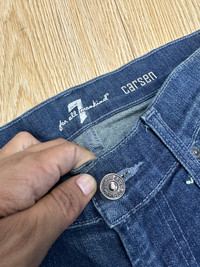 7 for all mankind denim > Tag Size W32 Manual Measurement (inchi) >Waist 32' >Outseam Length 44' >Inseam 33' >Leg Opening 8' >Front Rise 12' >Thigh 12' >Knee 8.5' *All measurements are taken with the garment flat on the floor. >Made in Mexico >Colour Blue >Condition (Used Item). *Refer photo for the best view 👖all pants need to be washed before used PLEASE DON'T EXPECT IT TO BE LIKE NEW OR IN PRISTINE CONDITION. IF YOU HAVE ANY INQUIRIES, FEEL FREE TO ASK. SHIPPING DHL EXPRESS Shipping ($25-40) and it will take about 4 - 7 working days for delivery for most international orders. Please leave your phone number. Tracking number will be provided. 🔥I will combine shipping on all of my items for savings on multiple purchases. All items will be shipped out within 1 - 4 days after payment received. 🏦PAYMENT : PayPal ONLY X Refund X Return **Please make sure this your best choice before buying because we care about customer satisfaction Thank you for viewing. Don't forget to follow my account and check out my other listing. ✅✅Accept Reasonable Offer Only