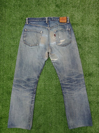 DENIME SUPER DISTRESSED RARE 📝 Tag size 34 📝(Manual) Waist 34' Full Length Outseam 41'.Fit and suitable for 33-34 US/Euro **please refer measurement box for manual fit ✏️Made In Japan ✏️Selvedge redline ✏️ Super distressed repair zigzag ✏️leather pai ✏️Used good condition for distressed.Refer photo for best view SHIPPING 🚛✈️ International Shipping by DHL Express PAYMENT🏦💲 Paypal Only ❌no return for wrong size. ✅ Accept reasonable offer IF YOU HAVE ANY INQUIRIES, FEEL FREE TO ASK