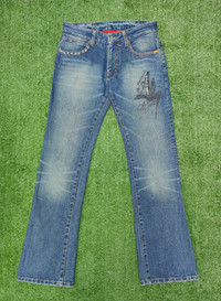 ITEM: GERONIMO DENIM COLLECTION APACHE/PUNK DESIGN 📝 Tag size 30 Manual waist 30' length outseam 42'. **please refer measurement box for manual fit ✏️ Nice design for collection ✏️ Made in Japan ✏️Used good condition.Refer photo for best view *Item included shipping SHIPPING 🚛✈️ International Shipping by DHL Express PAYMENT🏦💲 Paypal Only ❌no return for wrong size. ✅ Accept reasonable offer IF YOU HAVE ANY INQUIRIES, FEEL FREE TO ASK