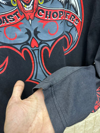 Vintage Choppers 🗒️Tag Size M (Fit to S) Manual Measurement (inchi) 🧥Chest 21’ 🧥Length 26’ 🧥Shoulder 20’ 🧥Sleeve Length 24’ 🧥Hem 21’ *All measurements are taken with the garment flat on the floor. 🛠️Made in US (wash tag damage) 🌈Colour Faded Black 👌Condition Standard Worn (Gently Used Item) *Refer photo for the best view 👖all 🧥 need to be washed PLEASE DON'T EXPECT IT TO BE LIKE NEW OR IN PRISTINE CONDITION. IF YOU HAVE ANY INQUIRIES, FEEL FREE TO ASK. SHIPPING DHL EXPRESS Shipping ($25-40) and it will take about 4 - 7 working days for delivery for most international orders. Please leave your phone number. Tracking number will be provided. 🔥I will combine shipping on all of my items for savings on multiple purchases. All items will be shipped out within 1 - 4 days after payment received. 🏦PAYMENT : PayPal ONLY ❌ Refund ❌Return **Please make sure this your best choice before buying because we care about customer satisfaction 💕 Thank you for viewing. Don't forget to follow my account and check out my other listing. ✅✅Accept Reasonable Offer Only