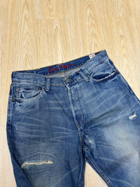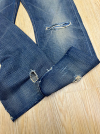 VINTAGE EZRA FITCH DISTRESSED DENIM 🔢Tag size W30 X 30 Manual Measurement (inchi) 👖Waist 31’ 👖Outseam Length 40’ 👖Inseam 29’ 👖Leg Opening 9.5’ 👖Front Rise 12’ 👖Thigh 12.5’ 👖Knee 9.5’ 📱All measurements are taken with the garment flat on the floor. > Leather back tag & tagging > Made in Turkey >Fly Button 🔴Colour Distressed Blue ©️Condition (Used Item) ⭐️DEFECT: Original distressed and effect of used stain *Refer photo for the best view ⭐️⭐️👖all pants need to be washed before used for clean soft dust and stain ✅PLEASE DON'T EXPECT IT TO BE LIKE NEW OR IN PRISTINE CONDITION. ✈️SHIPPING 1.DHL EXPRESS Shipping ($25-40) and it will take about 3-8 working days for delivery for most international orders. Please leave your phone number. Tracking number will be provided. 2.We will combine shipping on all of my items for savings on multiple purchases. 3.All items will be shipped out within 1 - 3 days after payment received.1️⃣-3️⃣ 🏦PAYMENT : PayPal ONLY **Import duties,taxes and charges are not included in item price(We declare item as a gift) ↔️ REFUND: ❌Exchange ❌ Refunds ❌ Return ❌ Trades. All sales are final.Please confirm your size and manual measurement box.Refer all picture for condition and defect. **Please make sure this your best choice before buying because we care about customer satisfaction Thank you for viewing. ⏩️⏩️Don't forget to follow my account and check out my other listing and vintage denim ✅Accept Reasonable Offer. 🗣️IF YOU HAVE ANY INQUIRIES, FEEL FREE TO ASK.