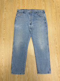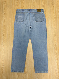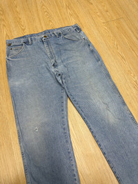 WRANGLER RUGGED WEAR DISTRESSED DENIM 🔢Tag size W38 x 30 Manual Measurement (inchi) 👖Waist 38’ 👖Outseam Length 41’ 👖Inseam 30’ 👖Leg Opening 8’ 👖Front Rise 13’ 👖Thigh 13’ 👖Knee 9.5’ 📱All measurements are taken with the garment flat on the floor. >Cowboy Zip 🇯🇵Made in USA 🔴Colour Distressed Blue ©️Condition (Used Item) ⭐️DEFECT: distressed and effect of used stain *Refer photo for the best view ⭐️⭐️👖all pants need to be washed before used for clean soft dust and stain ✅PLEASE DON'T EXPECT IT TO BE LIKE NEW OR IN PRISTINE CONDITION. ✈️SHIPPING 1.DHL EXPRESS Shipping ($25-40) and it will take about 3-8 working days for delivery for most international orders. Please leave your phone number. Tracking number will be provided. 2.We will combine shipping on all of my items for savings on multiple purchases. 3.All items will be shipped out within 1 - 3 days after payment received.1️⃣-3️⃣ 🏦PAYMENT : PayPal ONLY **Import duties,taxes and charges are not included in item price(We declare item as a gift) ↔️ REFUND: ❌Exchange ❌ Refunds ❌ Return ❌ Trades. All sales are final.Please confirm your size and manual measurement box.Refer all picture for condition and defect. **Please make sure this your best choice before buying because we care about customer satisfaction Thank you for viewing. ⏩️⏩️Don't forget to follow my account and check out my other listing and vintage denim ✅Accept Reasonable Offer. 🗣️IF YOU HAVE ANY INQUIRIES, FEEL FREE TO ASK.