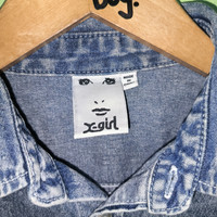X-girl Chemical Wash Denim Face Shirts On tag medium, but like Large oversize Overall very good cond Please check measurements Shipping from asia