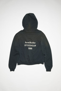 FINAL SALE Sale items are final and cannot be exchanged or returned. Relaxed unisex fit hoodie Sprayed finish Logo at the back Acne Studios 1996 Distressed details at the cuffs and hem Made with organically grown cotton and recycled polyester 89% cotton, 11% polyester Made in Sweden Style: CI0136 GOAT BLAC