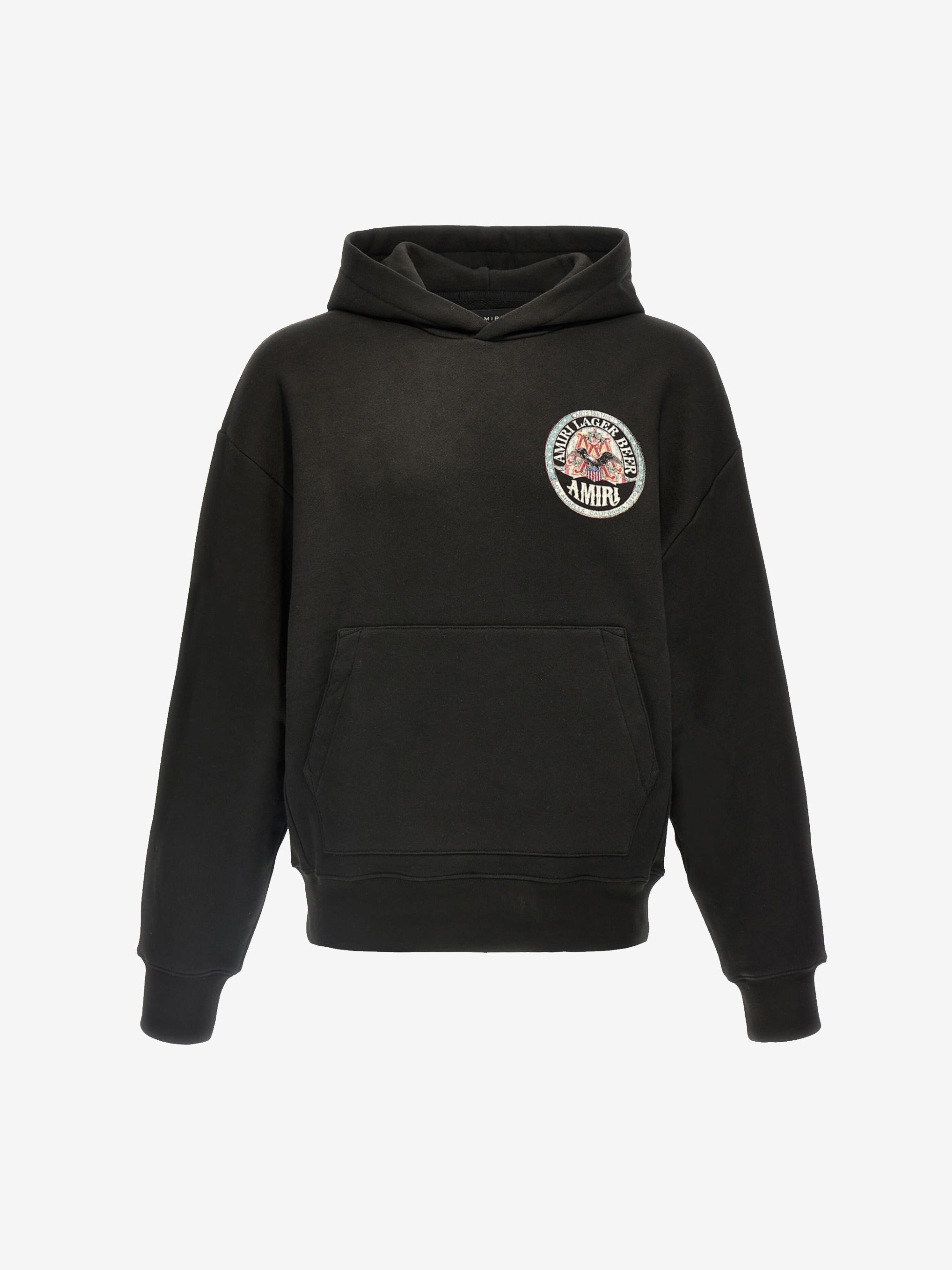Front pouch pocket Ribbed cuffs and hem Classic hood Graphic print to the rear 100% Cotton Made in Italy Style: AMJYHD1084 001 BLAC