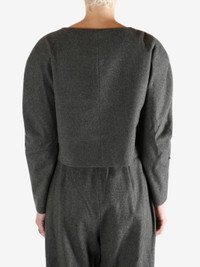 Rounded silhouette Falls softly along shoulder line 3D shape Embossed logo snap buttons Emphasizes brand identity Cotton padding Lightweight warmth for in-between seasons Simple design Pairs with various innerwear Layering possible Shell: 95% Wool/ 5% Cashmere Linning: 100% Polyester Filling: 100% Polyester Made in South Korea Style: AM25FWW02JK CHAR