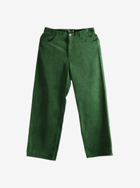 Uses 12WELL corduroy Pigment-dyed at fabric stage Worn-in texture via processing Smooth feel from quality materials Soft luster after heavy processing Wide-fit tapered silhouette overall Ample room around the thighs Gentle taper toward the hem Longer length wider hem Front zip-fly closure 100% Cotton Made in Japan Style: A25AP02FC FOREST GREEN FORE
