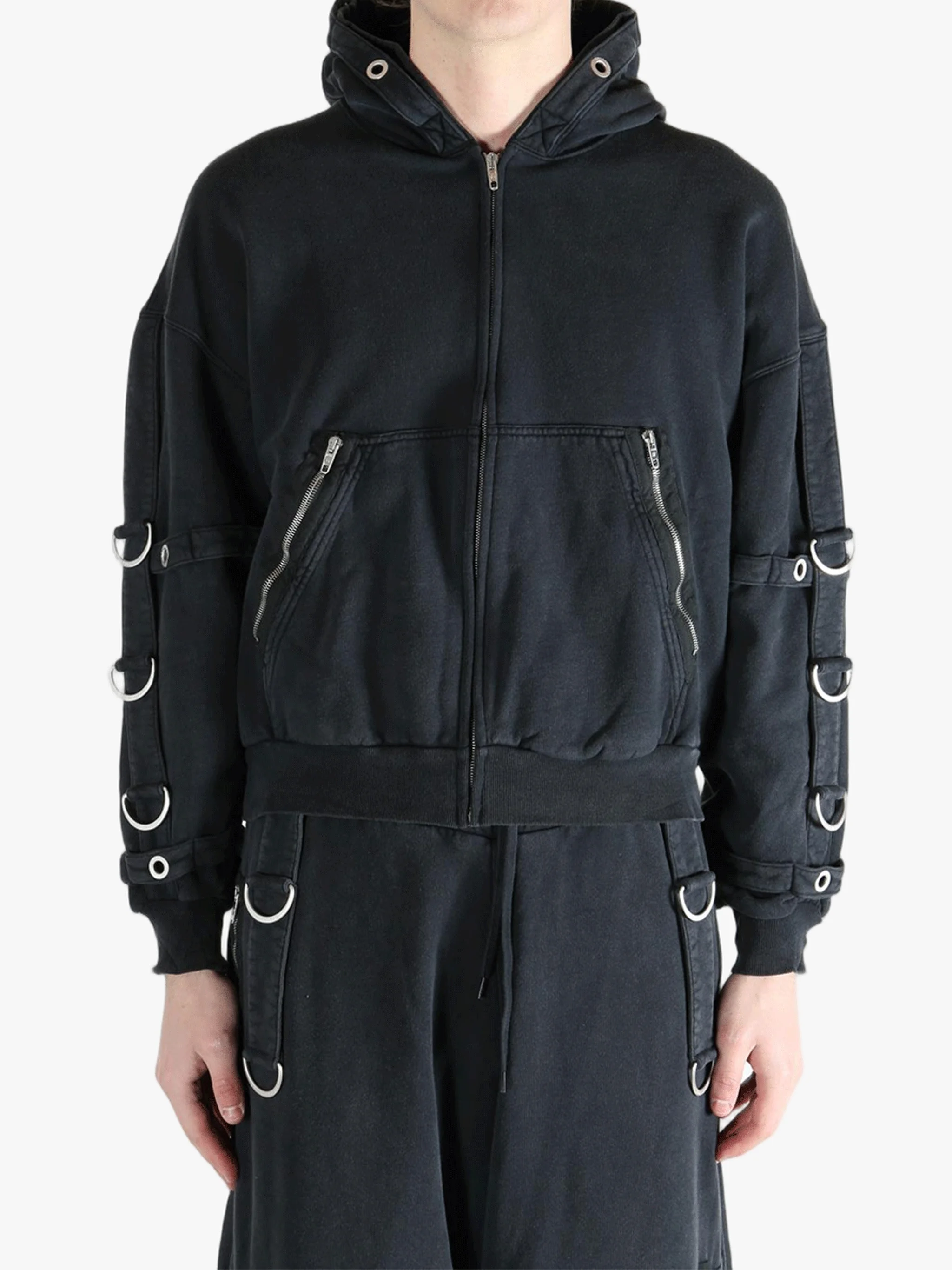 Men's D-ring Cargo Zip-up Hoodie in Faded Black