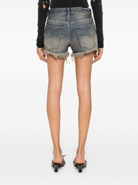 Denim fabric Whiskering effect Rear logo patch Ripped detailing Distressed effect Frayed edges Belt loops Classic five-pocket design Thigh-length cut Front button fastening 100% Cotton Made in Italy Style: 793948 TJW95 2204