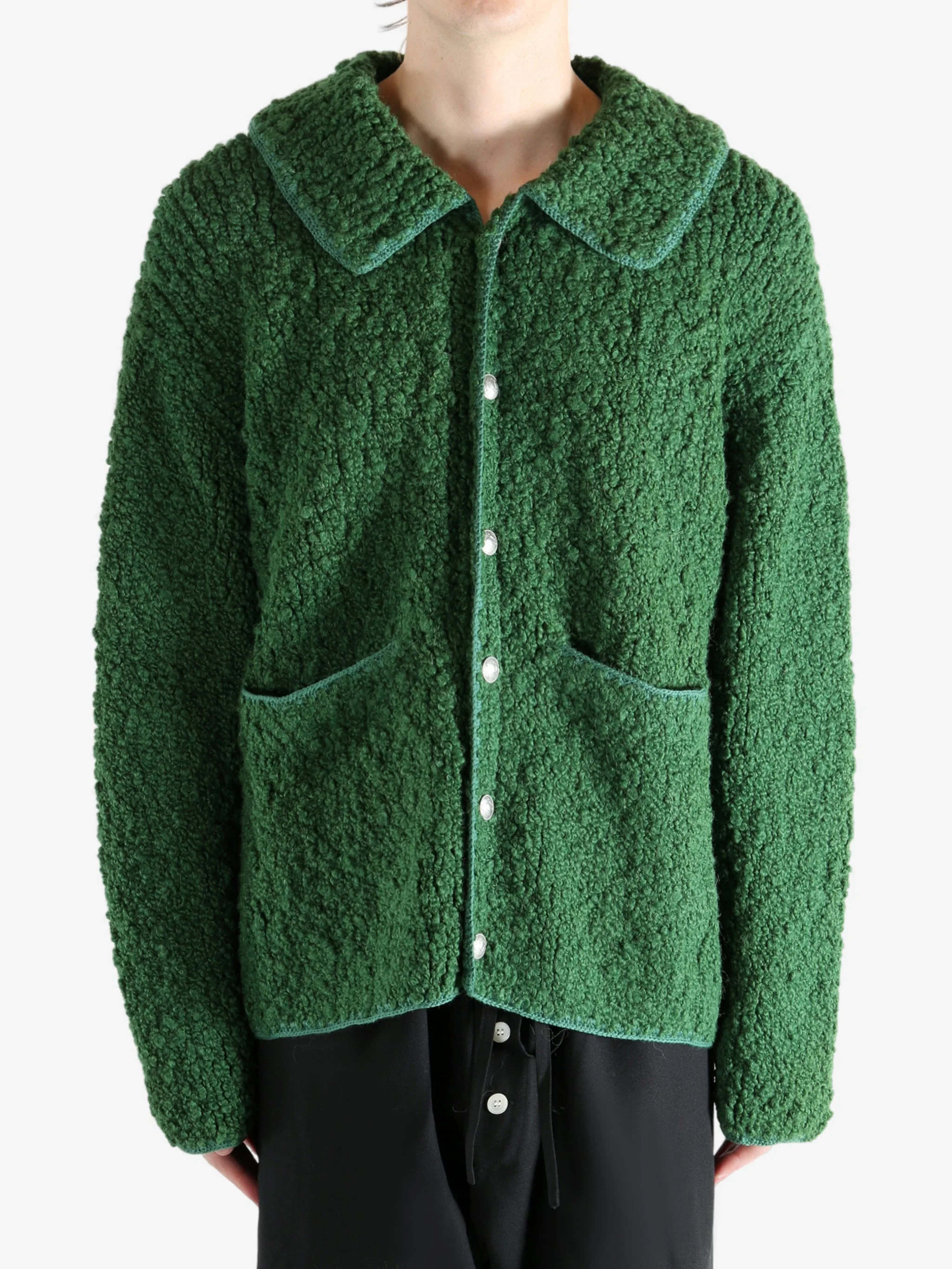 Jacket with a collar Button closure Two front pockets 65% AP/ 32% Wool/ 3% Nylon Made in Peru Style: MRF25KT019 GREE