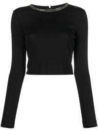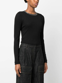 Jet black Cotton-silk blend Ribbed knit Beaded trim detail Keyhole detail to the rear Round neck Long sleeves Straight hem 96% Cotton/ 4% Elastane Made in Italy Style: ML171SR700 NERO