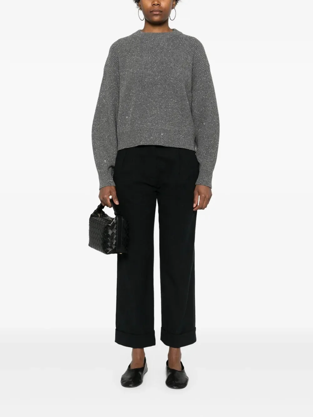 Wool-cashmere blend Knitted construction Metallic threading Sequin embellishment Crew neck Drop shoulder Long sleeves Ribbed hem Ribbed cuffs 47% Cashmere/ 47% Wool/ 4% Polyester/ 2% Polyamide Made in Italy Style: MBM756900 PIOMBO