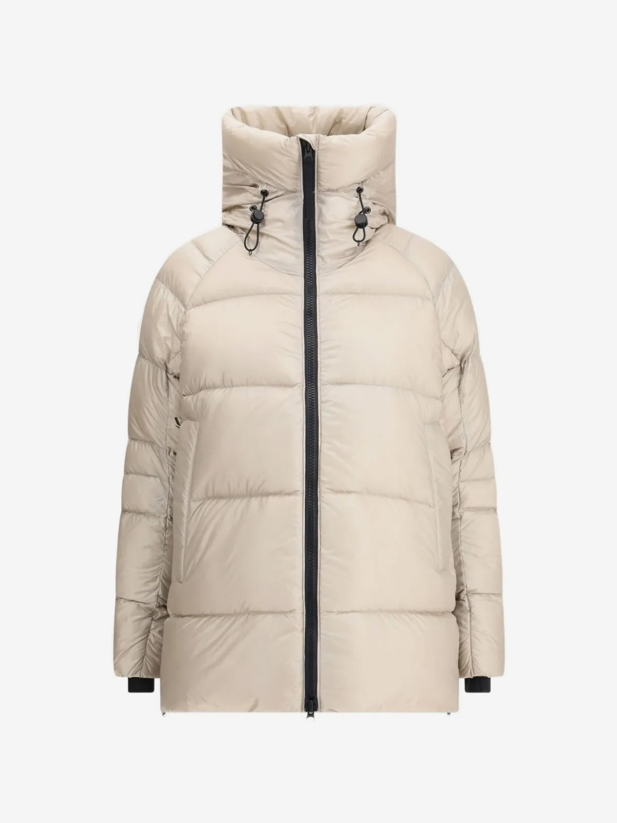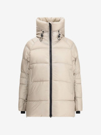High collar Concealed zip fastening Drawstring hood Quilted design Patch logo 100% Nylon Made in Canada Style: 2239LB 9432
