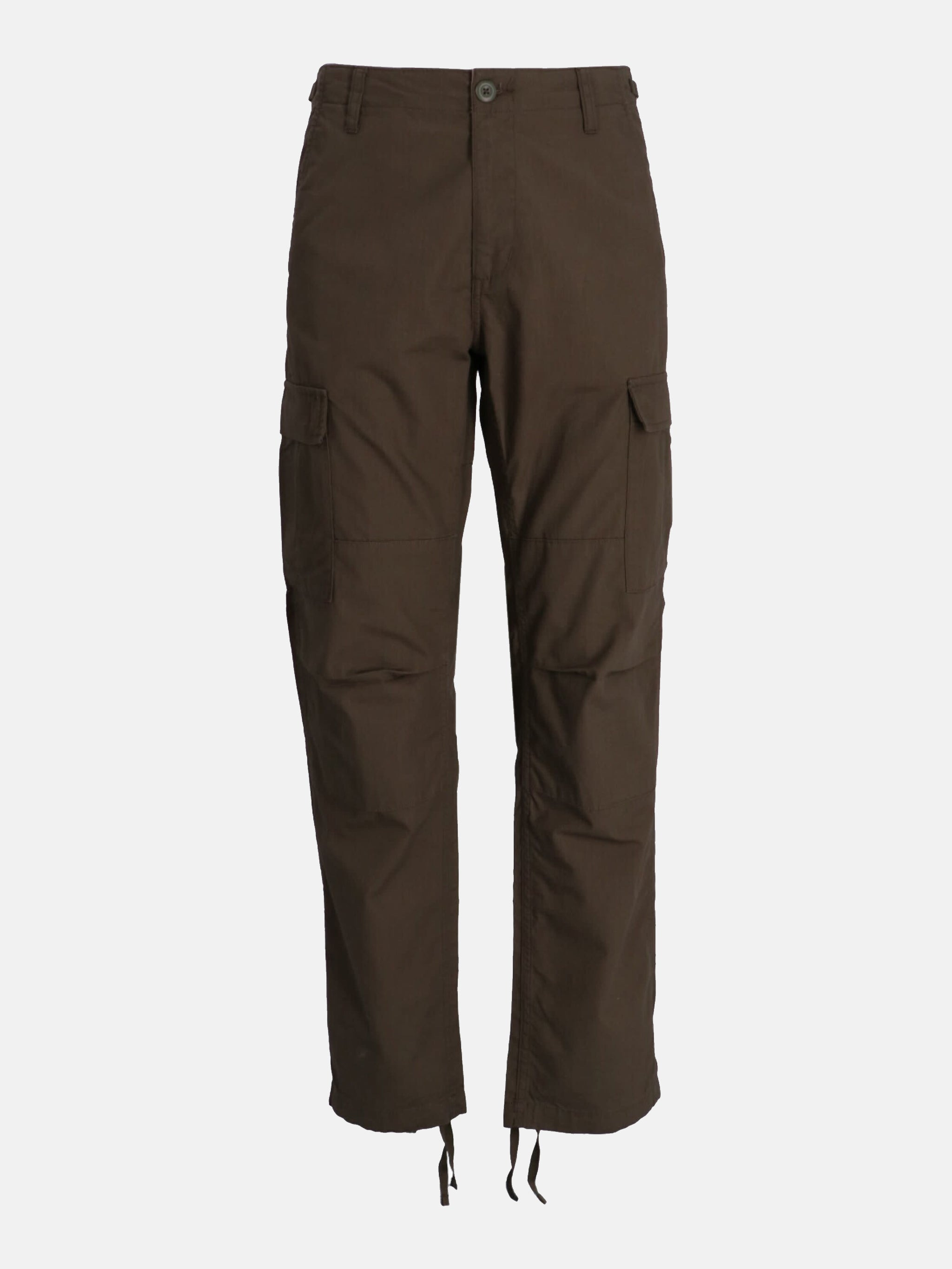 Mid-rise Straight leg Front button and zip fastening Belt loops Two side cargo pockets Two rear flap pockets Logo patch to the rear Drawstring hem 100% Cotton Made in United States Style: I032468 CYPR