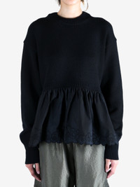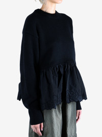 Ribbed neckline and sleeve cuffs Scalloped hemline Pullover styling Twofer style 97% Recycled Cashmere, 3% Wool Embroidery: 100% Recycled Polyamide Made in Romania Style: 2 25 KNI51002 BLAC