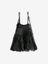 Satin organza fabric Sculptural proportions Subtle ruffle detailing Playful silhouette Bow closure detail Draping shoulder bow Widened waist construction Airy lightness feel Effortless stylish look Outer: 55% Polyamide/ 45% Polyester Lining: 53% Cupro/ 47% Polyester Made in Latvia Style: 2.25RTW10007 BLACK