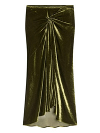 Mid length skirt Twisted detail at the waist 80% Viscose Rayon/ 20% Silk Made in Poland Style: 252-010857-2282-606