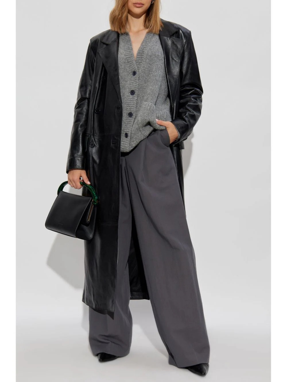 ALL SALE ITEMS ARE FINAL SALE High waist, wide legs Smooth, subtle sheen Meticulous front pleats Side and rear pockets 63% Wool/ 23% Paper/ 14% Polyamide Made in Morocco Style: 242 010901 9347 811