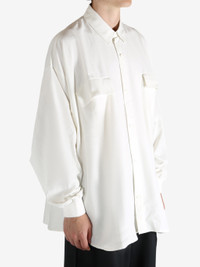 Oversized fit Front button placket Flap pockets Rib-knit cuffs Shirt collar Contoured hemline 100% Cotton Made in United States Style: 186SP254424F