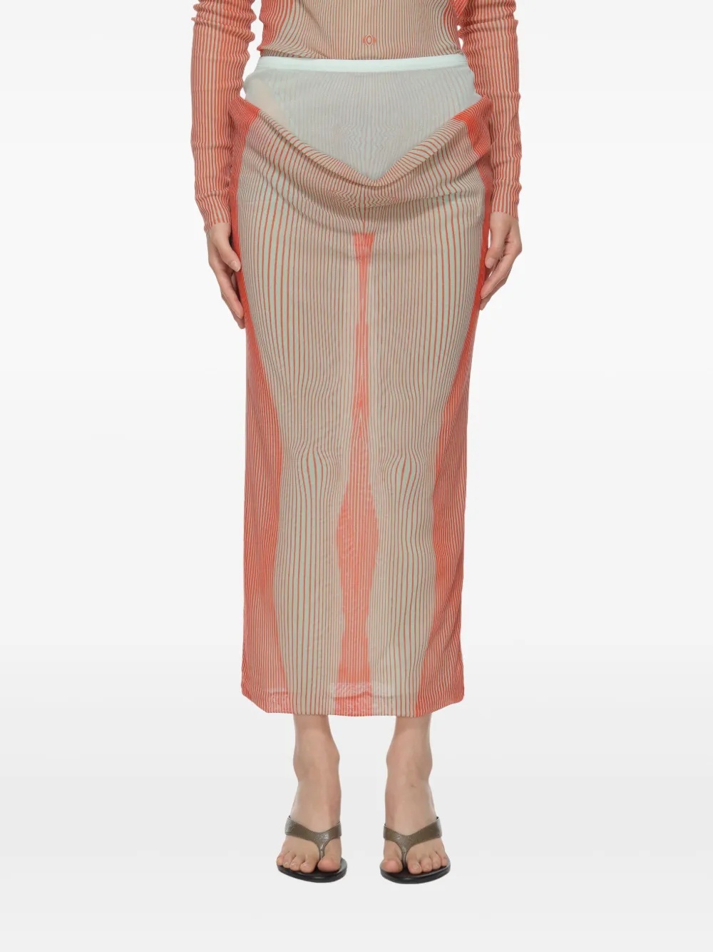 Layered midi skirt Mid-length Elasticated waistband Straight hem 100% Polyamide Made in Italy Style: 25 33 F JU162 T578 4216