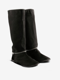 Collapsable shape Rubber driving sole Modular zipper removable shaft Ankle slip on zipper trim Upper: 100% Suede Cow Leather/100% Cow Grain Leather Sole: 100% Rubber Made in Italy Style: KKWAW25FT03 190